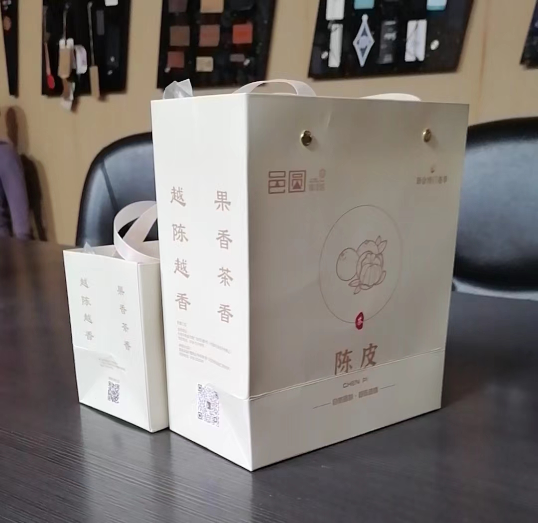 用纸:157克双铜/250克双铜/1800克双灰/800克双灰 生产机台:小森四开机 工艺:过哑胶,粘袋、手提袋装铆钉穿罗纹带、组装礼盒