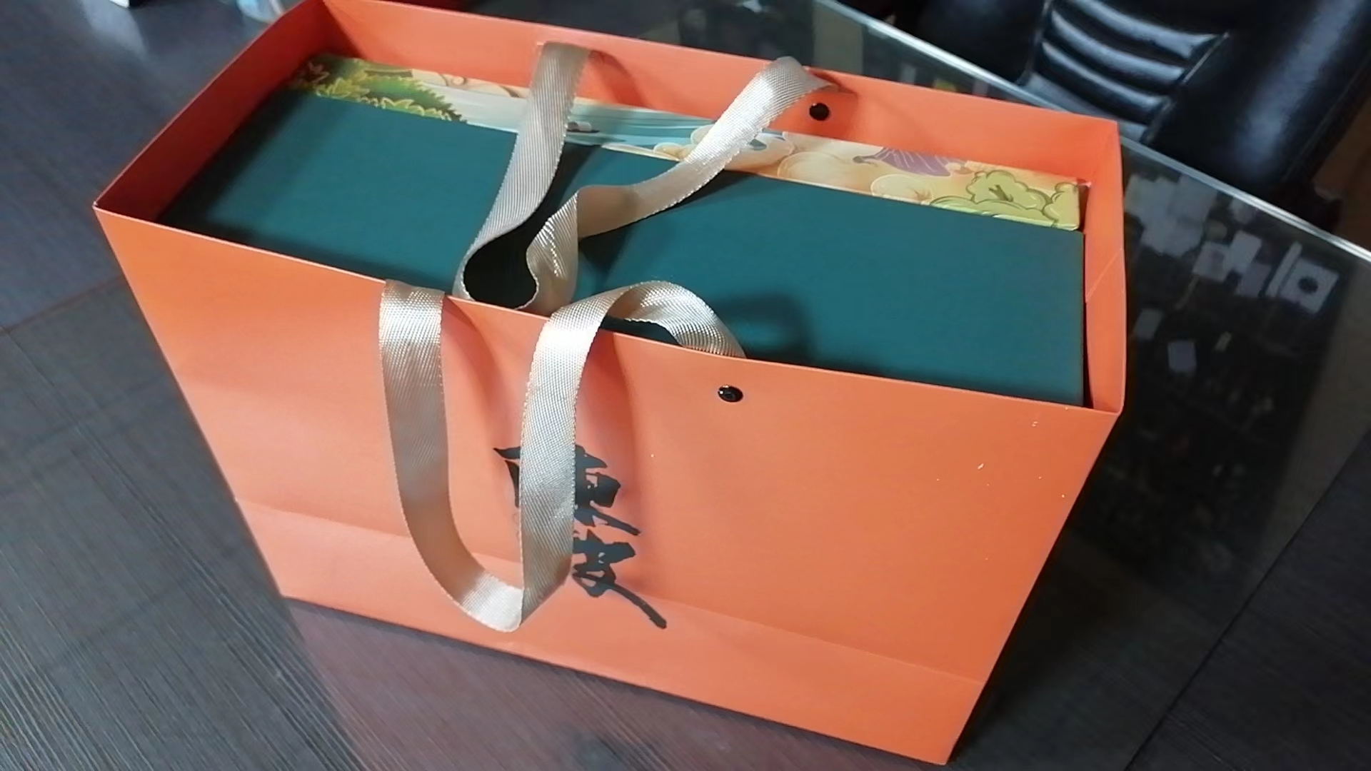 用纸:157克双铜/250克双铜/1800克双灰/800克双灰 生产机台:小森四开机 工艺:过哑胶,粘袋、手提袋装铆钉穿罗纹带、组装礼盒